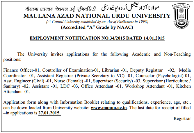 Published 18/01/2015 مانو میں تقررات کا تازہ اعلامیہ مانو میں تقررات کا تازہ اعلامیہ تفصیلات کے لیے مانو کی ویب سائٹ ملاحظہ کریں Share this:FacebookX
